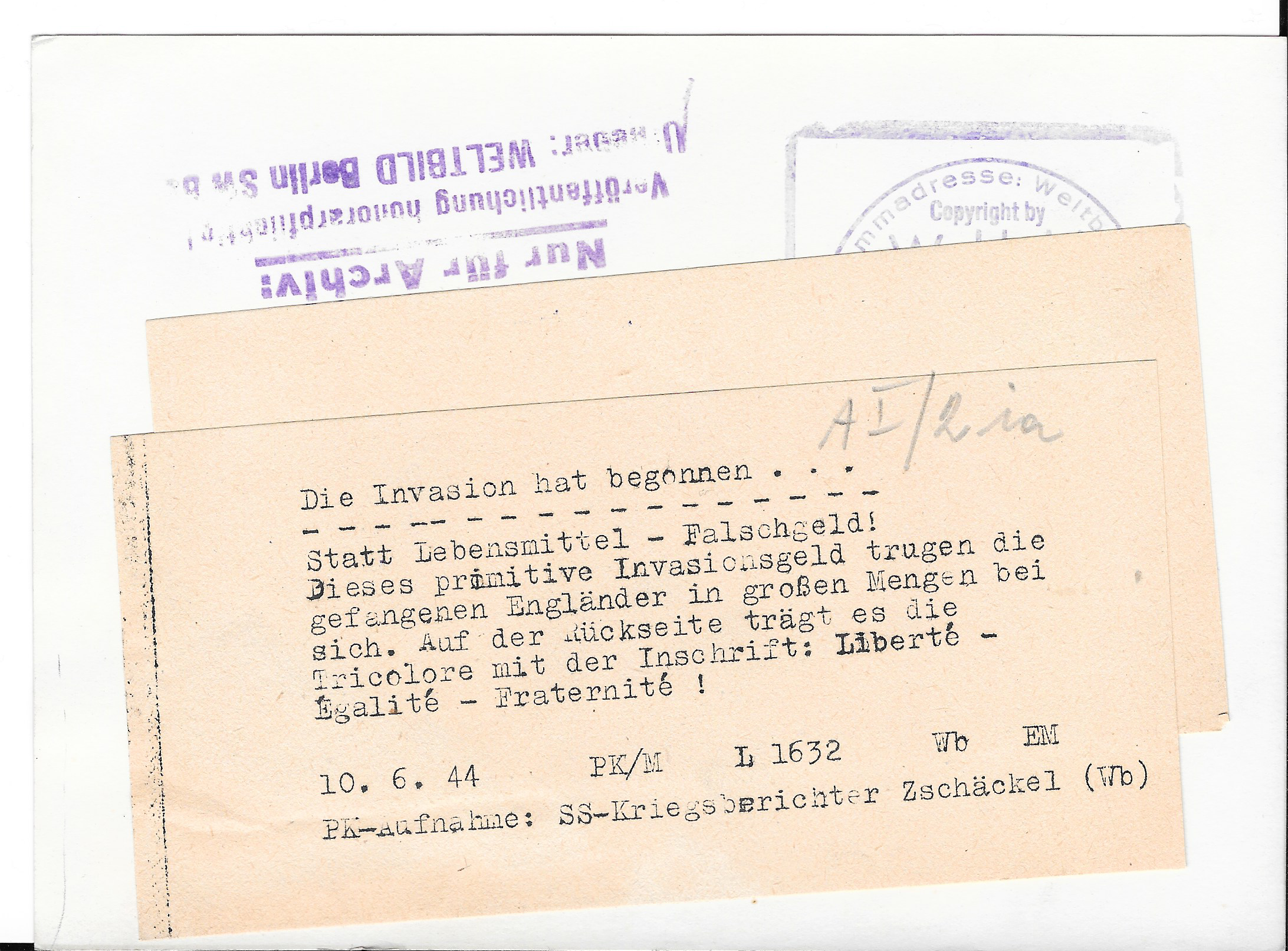Beschriftung und Stempel: